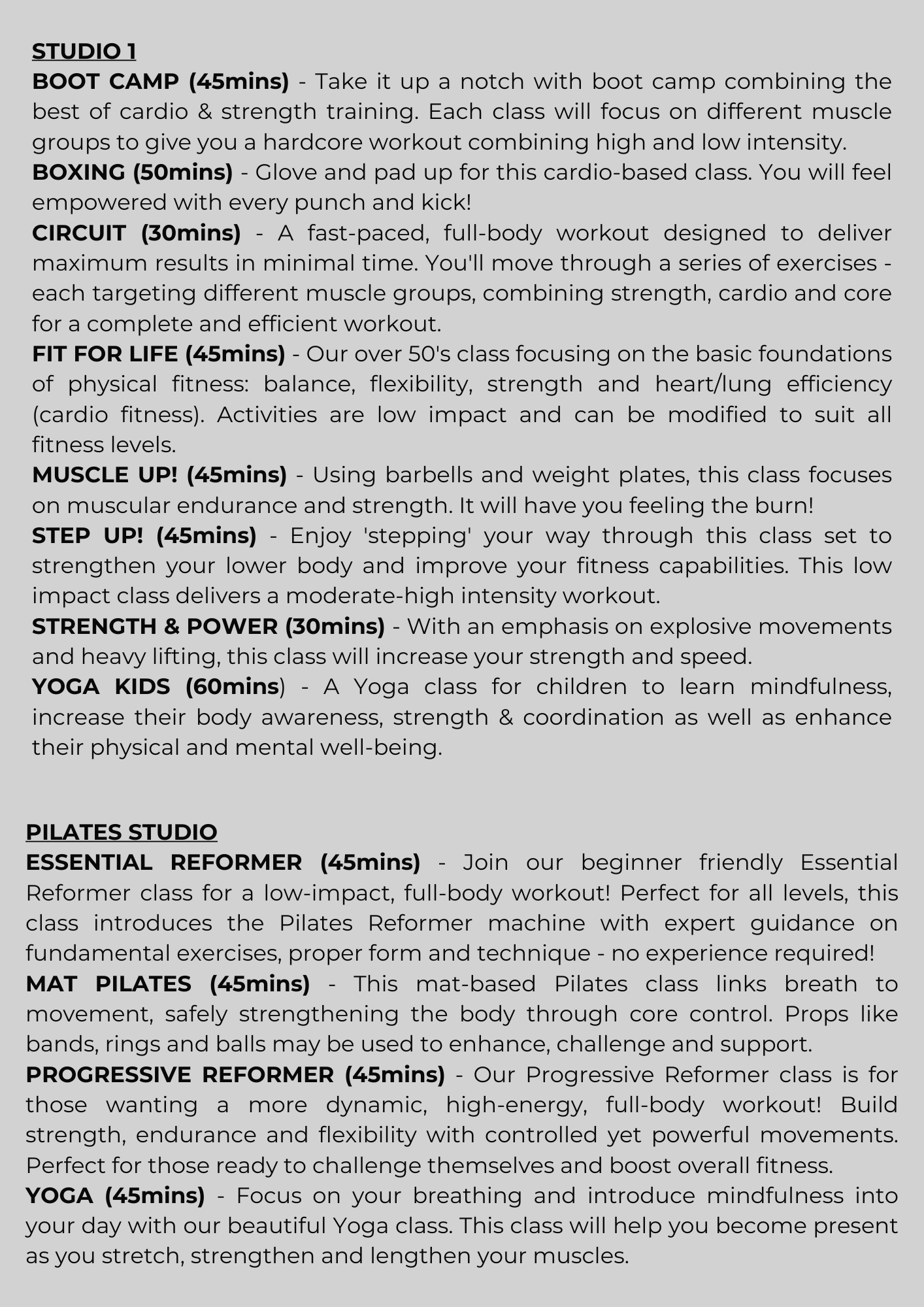 Classes are subject to change without notice. Please check your My club Fitness app for the most up to date information.